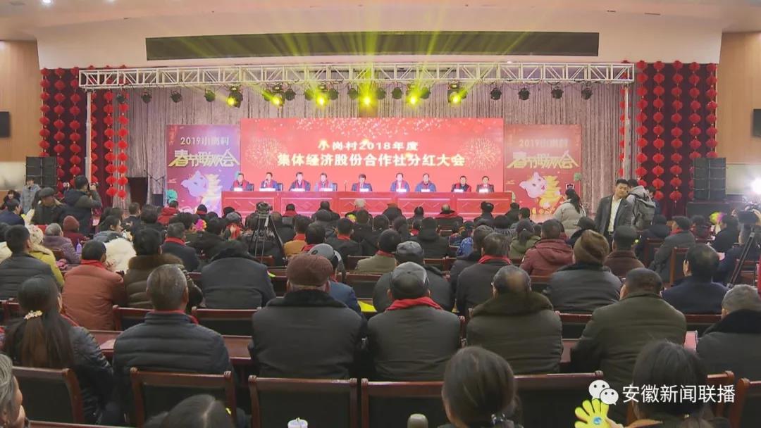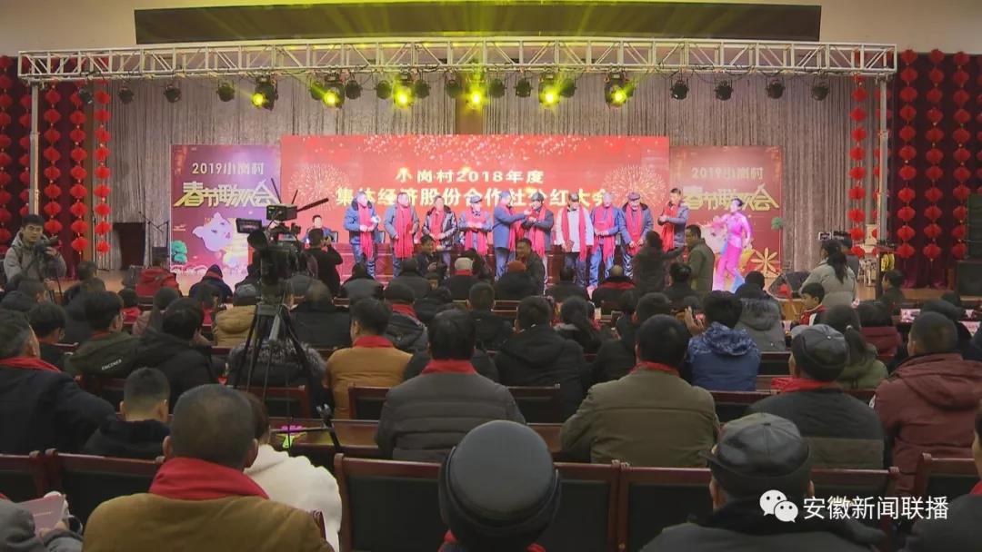 【出镜】这里是中国农村改革的主要发源地——凤阳县小岗村,清脆的花鼓、热闹的歌舞,小岗村2018年度集体经济分红正在这里举行。