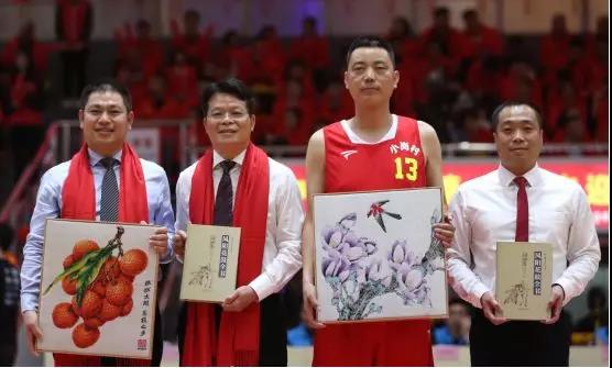 在比赛开始之前,巷头社区和小岗村有一个简单的互赠纪念品的仪式,小岗村赠送出《凤阳花鼓全书》,这本450万字的书籍是全国首部国家非遗巨著。而巷头社区则送出他们特色的大朗毛织画,也是非常具有纪念意义。