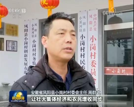 安徽省凤阳县小岗村村委会主任 周群之:小岗村通过农村集体产权制度改革,让壮大集体经济和农民增收同步,村集体的资金、资源、资产得到了有效运营,产生了更大的效益。