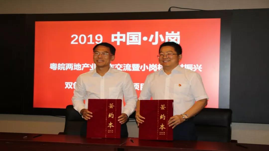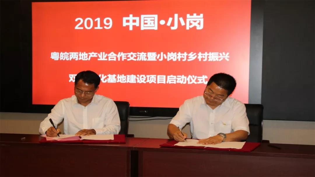 会间,有关企业签订了粤皖两省农业企业农产品购销等协议,李锦柱向深圳徽商农业科技股份有限公司授予“创业致富带头人(小岗村)培训基地”称号。