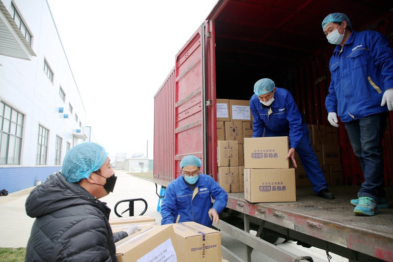 2月20日刚刚复工复产的小岗安徽蒸谷米食品科技有限公司在接到任务后,立即启动生产线,推掉了原先已经接到的订单,加班加点生产支援武汉的大米,同时企业决定,在村两委捐赠6吨的基础上,企业再捐赠6吨,没有物流愿意承接,企业就自己联系车辆,没有驾驶员,企业负责人严伟龙决定自己驾车,以壮士出征的勇气支援武汉。